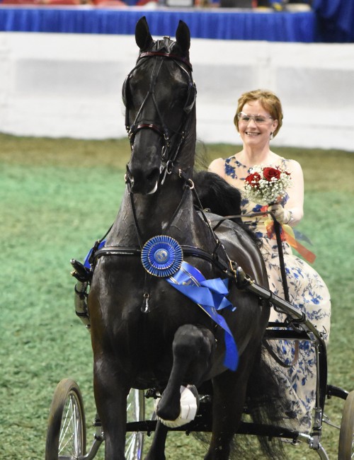 Lady Mandolin MS made a grand debut for both the year and in her new division, winning the Fine Harness World’s Grand Championship after a four horse workout and unanimously winning the earlier Junior Fine Harness Mares class; this was the second year in a row for James Stachowski to be at the whip of the Fine Harness World’s Grand Champion. The reserve tricolor went to previous World’s Grand Champion CH Wild Carrissima and Bret Day, who also finished in second in the Fine Harness Stallion/Gelding Stake. Included in the workout were We Must Be Nuts and Smith Lilly, who finished in third and won the earlier Stallion/Gelding Stake, and Trust My Imagination and Daniel Lockhart, who finished in fourth. Misdee Wrigley Miller was at the lines of the mare earlier in the week and showed her to the win in the Fine Harness Mare Stake, which the mare won the previous year as well. Samuri Lady and Peter Palmer finished in second for elated new owner Annika Bruggeworth. This pair came out on top earlier in the week in the Kentucky County Fair Fine Harness Championship. True Fortune and Jimmy Robertson turned in an eye-catching show for second.
